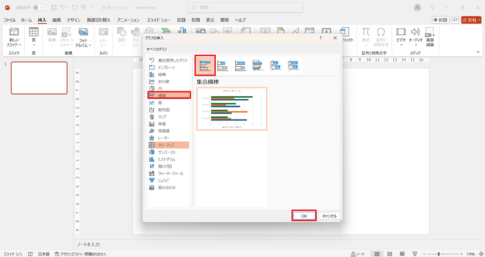 横棒から集合横棒を選択し、OKボタンをクリックします。